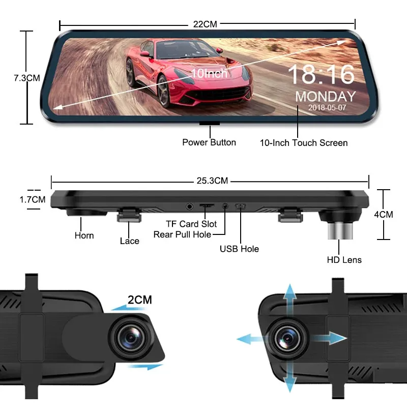 مرآة السيارة الذكية DVR Full HD