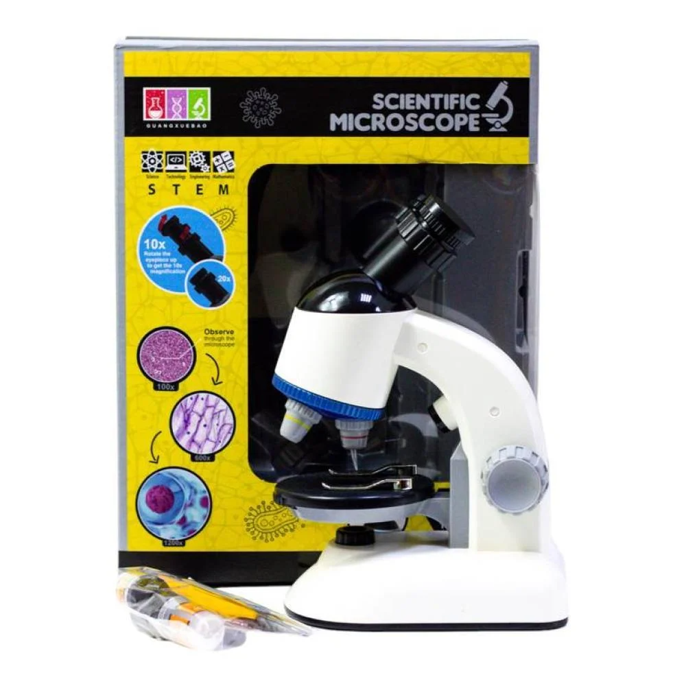 يأتي بعدسات تكبير تصل إلى 1200x لتتيح رؤية مذهلة للتفاصيل الدقيقة مثل الخلايا، الأنسجة، والكائنات المجهرية.