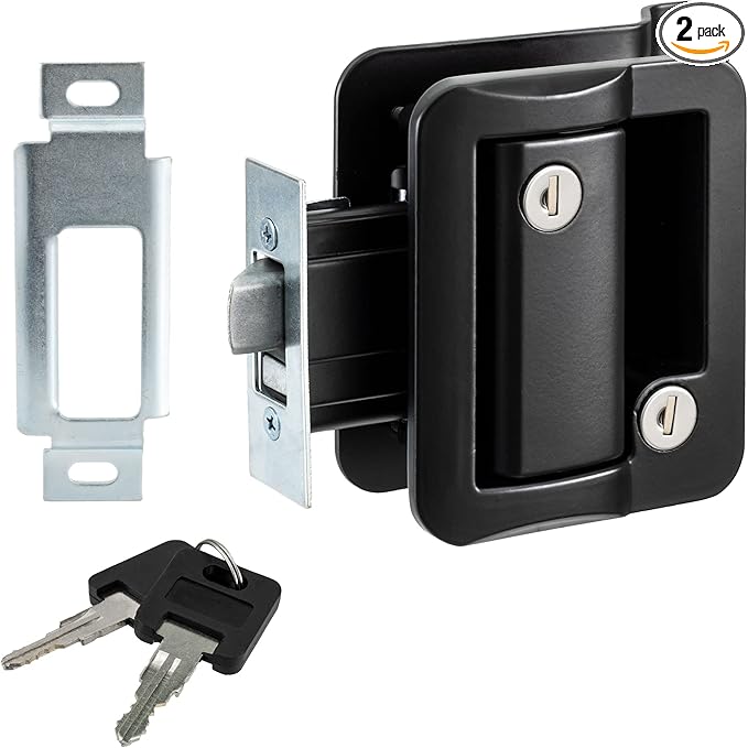 🔸 مزوّد بأسطوانتين قفل (للمقبض والمزلاج الإضافي) 🔸 مقبض خارجي وداخلي لسهولة الفتح 🔸 مزلاج أمان + ديدبولت لتأمين مضاعف 🔸 مقبض داخلي مزوّد بمفتاح دوران للقفل اليدوي ✅ مثالي لأبواب عربات السكن (RV) والمقطورات لتوفير أمان وراحة في السفر. 💡 سهل التركيب ويمنحك حماية موثوقة أثناء تنقلاتك.