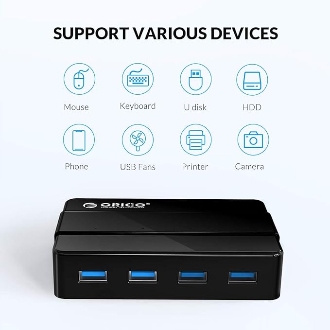 ⚡️ سرعة نقل بيانات تصل إلى 5 جيجابت/ثانية 🖥 متوافق مع Windows، Mac، Linux بدون حاجة لتعريف 🔋 مزود بمحول طاقة 12V وحماية من التيار الزائد 💡 مؤشر LED وتصميم مدمج عملي لتوصيل أقراص صلبة، طابعات وأجهزة متعددة