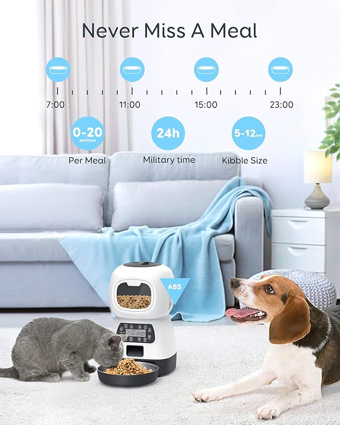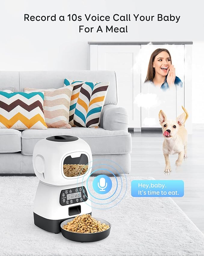 لمواصفات: ⏰ مؤقت وجدولة للوجبات تلقائيًا 🎙 تسجيل صوتي ينادي حيوانك وقت الأكل 📺 شاشة رقمية سهلة الاستخدام 🥣 خزان طعام شفاف وكبير 🐱🐶 مناسبة للقطط والكلاب الصغيرة الاستخدام: 🏠 مثالية للمشغولين أو أثناء السفر ✅ تضمن تغذية منتظمة ومريحة لحيوانك الأليف