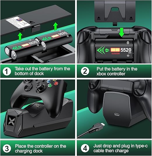 المميزات: ✅ بطاريات قابلة لإعادة الشحن – وفر فلوسك وقلل النفايات ⚡️ شحن سريع لأوقات لعب أطول 🔴🟢 مؤشرات LED لحالة الشحن 🎮 متوافقة مع Xbox Series X/S، One، Elite، SS، SX الاستخدام: 🔌 شحن وحدات تحكم Xbox بكل سهولة وسرعة