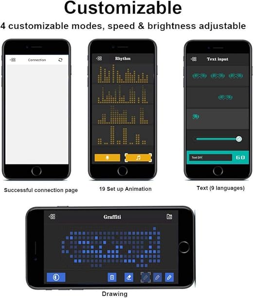 🔷 المميزات: 🔹 إضاءة LED برسوم متحركة ونصوص مخصصة 🔹 اتصال بلوتوث وتحكم كامل عبر تطبيق الهاتف 🔹 أنماط متعددة (قلوب، نصوص، رموز، وجوه تعبيرية) 🔹 شحن USB، بطارية قابلة لإعادة الشحن 🔹 مريحة وخفيفة الوزن 📱 فقط حمّل التطبيق واختر الرسمة أو اكتب ما تريد! 🎉 مثالية للمناسبات الخاصة وجذب الأنظار!